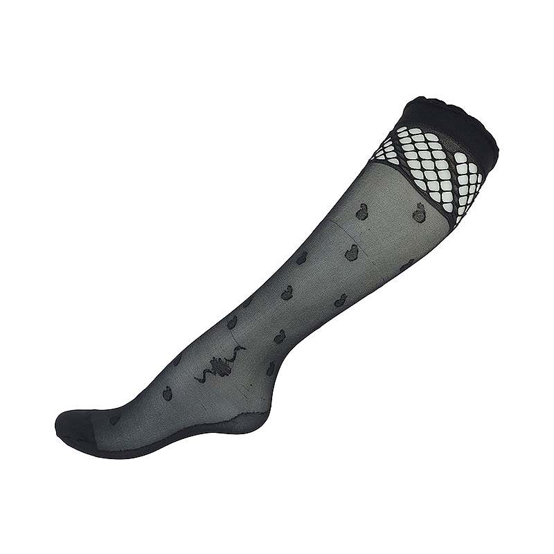 جوراب پارازین نخی زنانه سه ربع کفدار طرحدار گیپور مشکی
