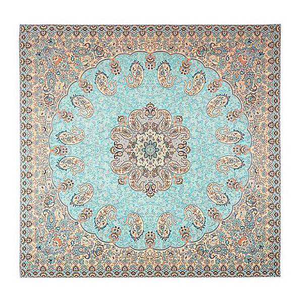 رومیزی مربع حاشیه دار طرح خورشید رنگ فیروزه ای روشن