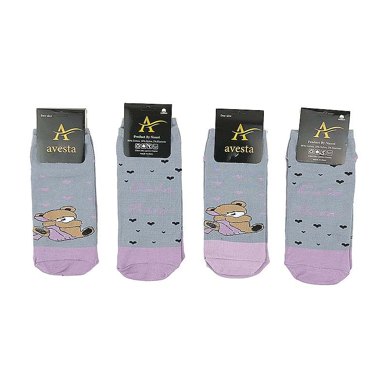 جوراب مچی نخی زنانه فانتزی تا به تا طرح خرس و قلب