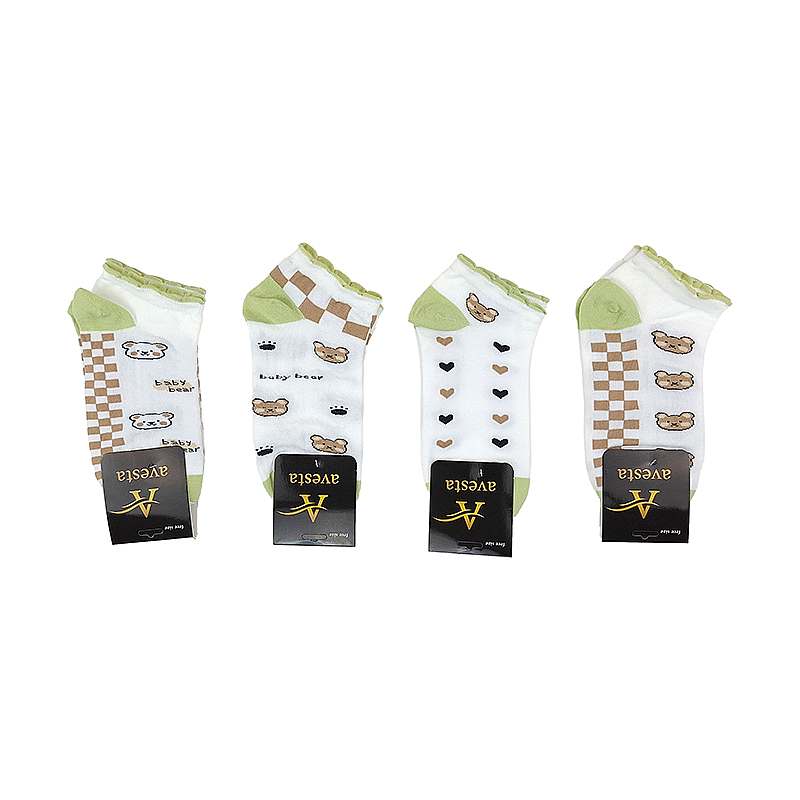 جوراب مچی نخی زنانه فانتزی کش کنگره تدی شطرنجی سبز