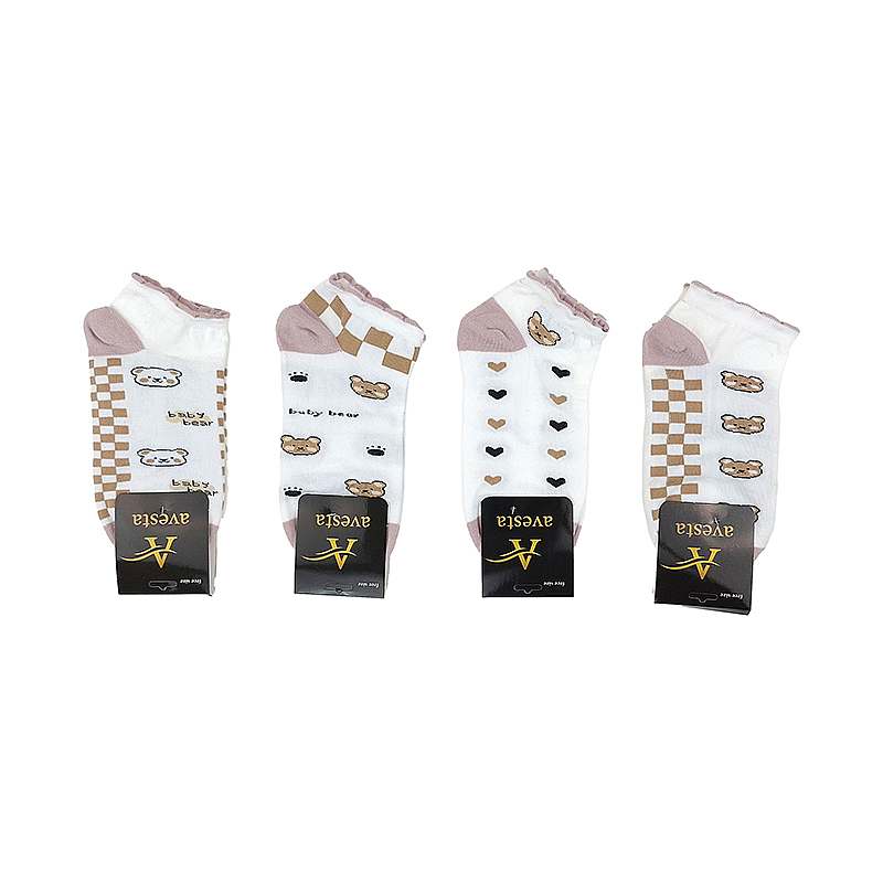 جوراب مچی نخی زنانه فانتزی کش کنگره تدی شطرنجی صورتی