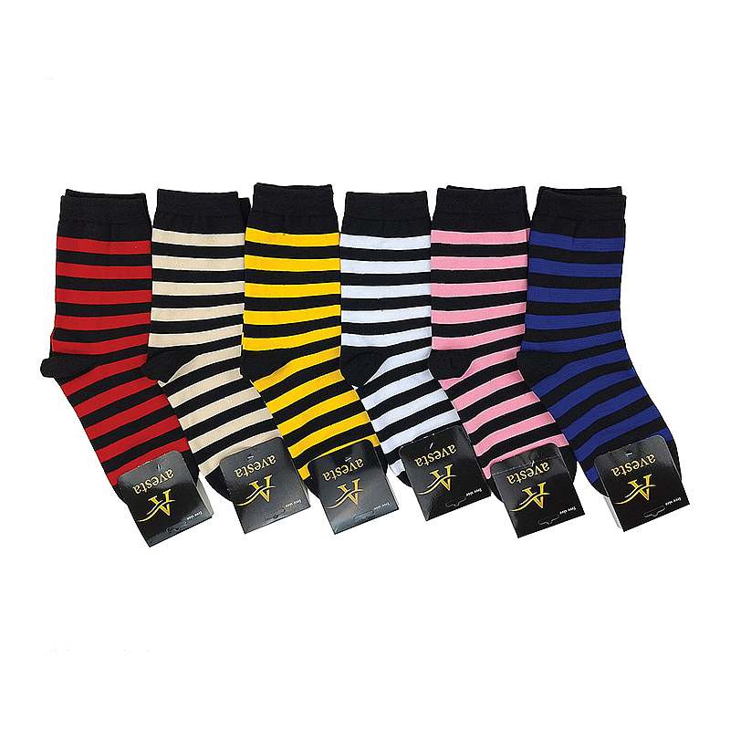 جوراب نخی زنانه ساق بلند طرح راه راه رنگی