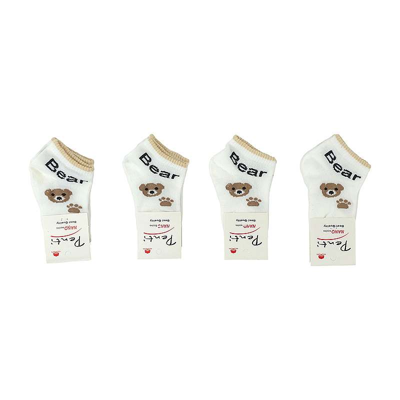 جوراب مچی نخی نوزادی طرح تدی سفید